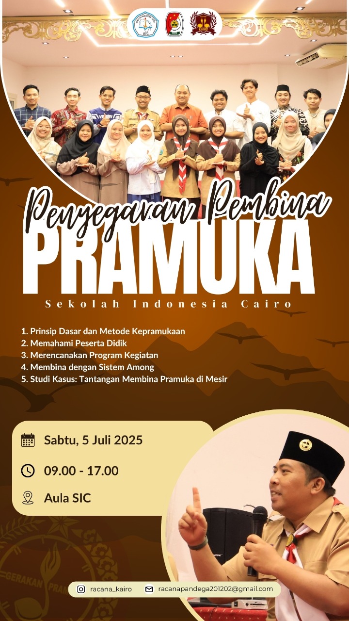 Salam pramuka!Assalamu’alaikum warahmatullahi wabarakatuh, Sekolah Indonesia Cairo demi meningkatkan kapasitas dan kompetensi pembina pramukanya menyelenggarakan Penyegaran Pembina Pramuka SIC yang...