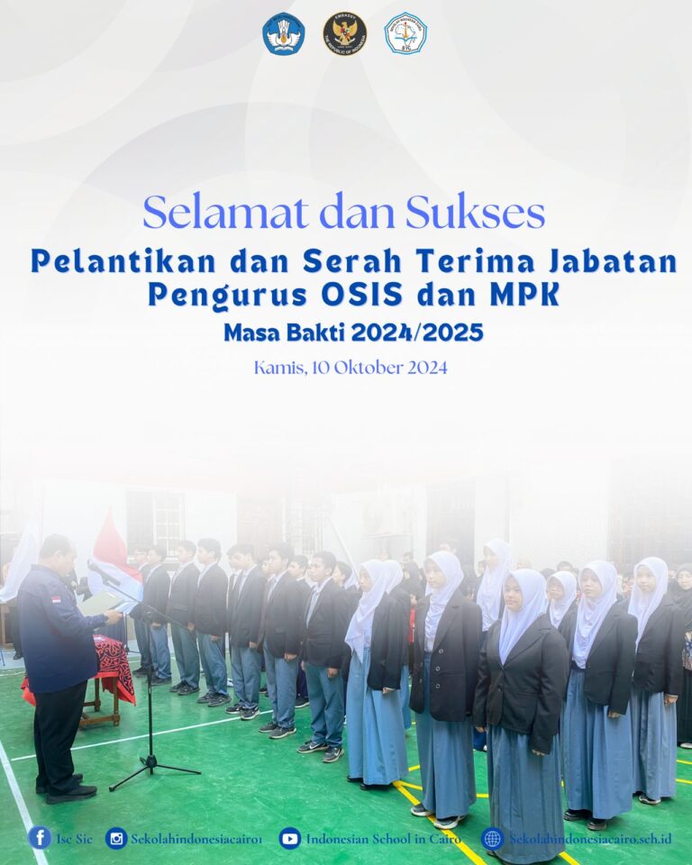 Kamis, 10 Oktober 2024, menjadi tonggak baru bagi Organisasi Siswa Intra Sekolah (OSIS) Sekolah Indonesia Cairo dengan adanya upacara serah...