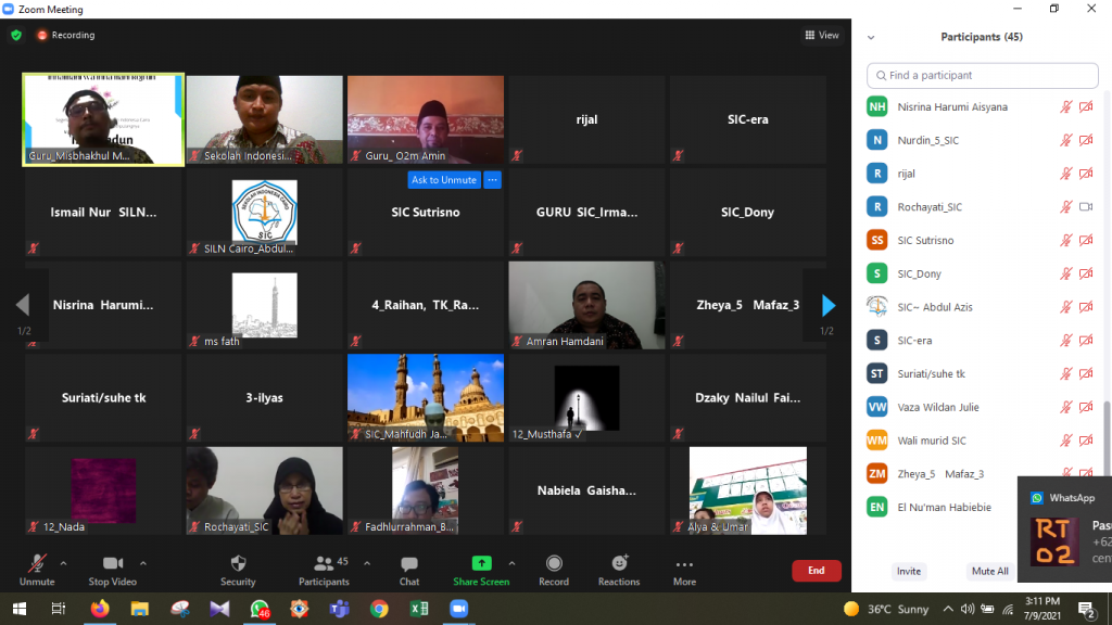 Kemudian acara sambutan terakhir dilakukan oleh Atase Pendidikan dan Kebudayaan KBRI Cairo Bapak Bambang Suryadi, beliau sekaligus juga membuka kegiatan Masa Pengenalan Lingkungan Sekolah (MPLS) yang akan dilaksanakan 3 hari kedepan. Dalam sambutannya beliau menyapaikan senada dengan Bapak Kepala Sekolah bahwa dalam kegiatan pembelajaran di era pandemic ini perlu adanya kerjasama yang baik antara pihak sekolah sebagai penyelenggaea proses pembelajaran, peserta didik dan tentunya partisipasi orang tua dalam menciptakan proses pembelajaran daring secara ideal.
