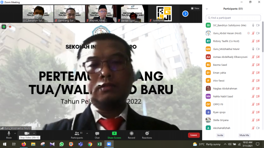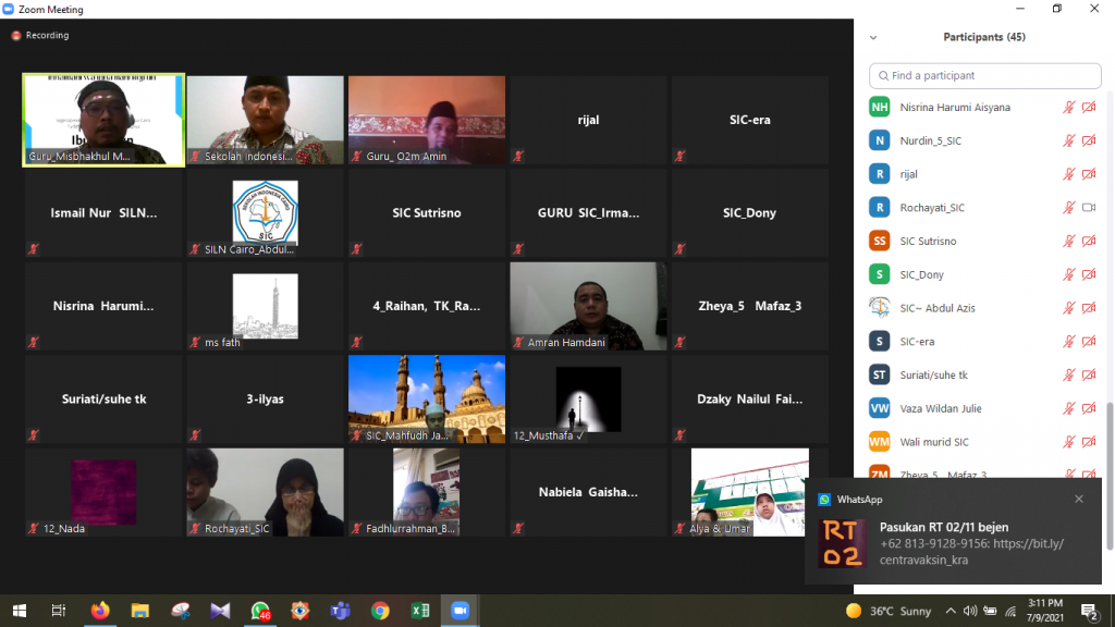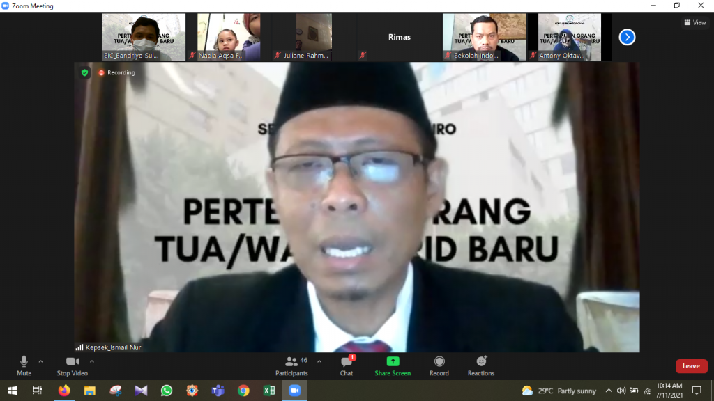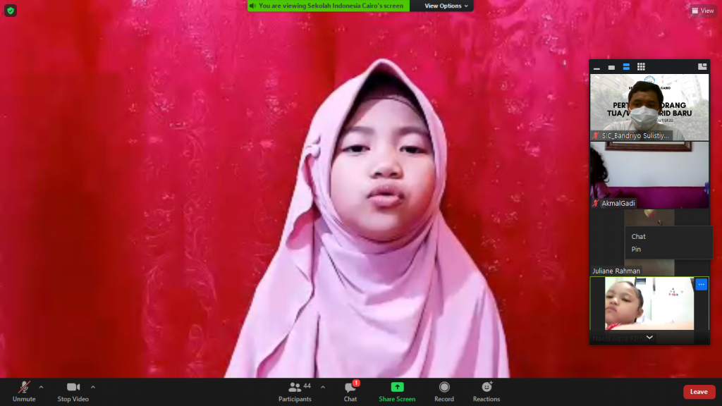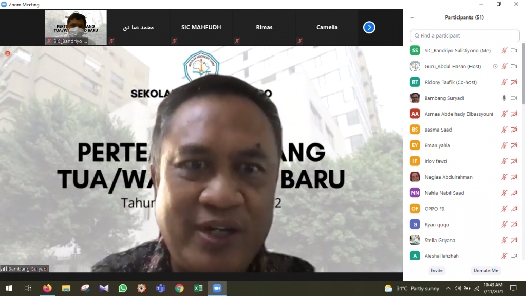 PERTEMUAN ORANG TUA/WALI MURID BARU SEKOLAH INDONESIA CAIRO TAHUN PELAJARAN 2021/2022