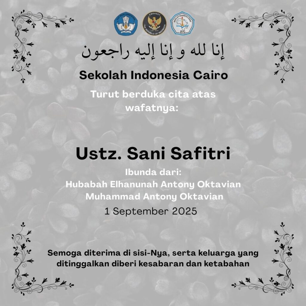 Sekolah Indonesia Cairo menyampaikan duka cita yang mendalam atas berpulangnya ke rahmatullah: