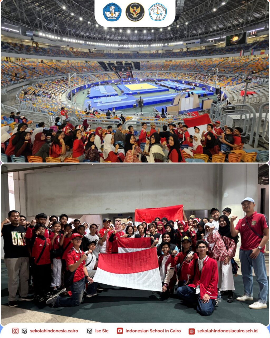 Jumat, 19 September 2025, murid Sekolah Indonesia Cairo hadir di Cairo International Stadium untuk memberikan dukungan penuh kepada Tim Nasional Gymnastic Indonesia dalam ajang bergengsi Artistic Gymnastics Pharaohs Cup International Tournament 2025.Tim Nasional tersebut berjumlah 8 orang dengan rincian dua atlet yunior dan dua atlet senior dan empat pelatih, mereka berada di Mesir sejak selasa, 16 – 22 September 2025. Ajang bergengsi ini diikuti oleh lima belas negara dengan 165 atlet.