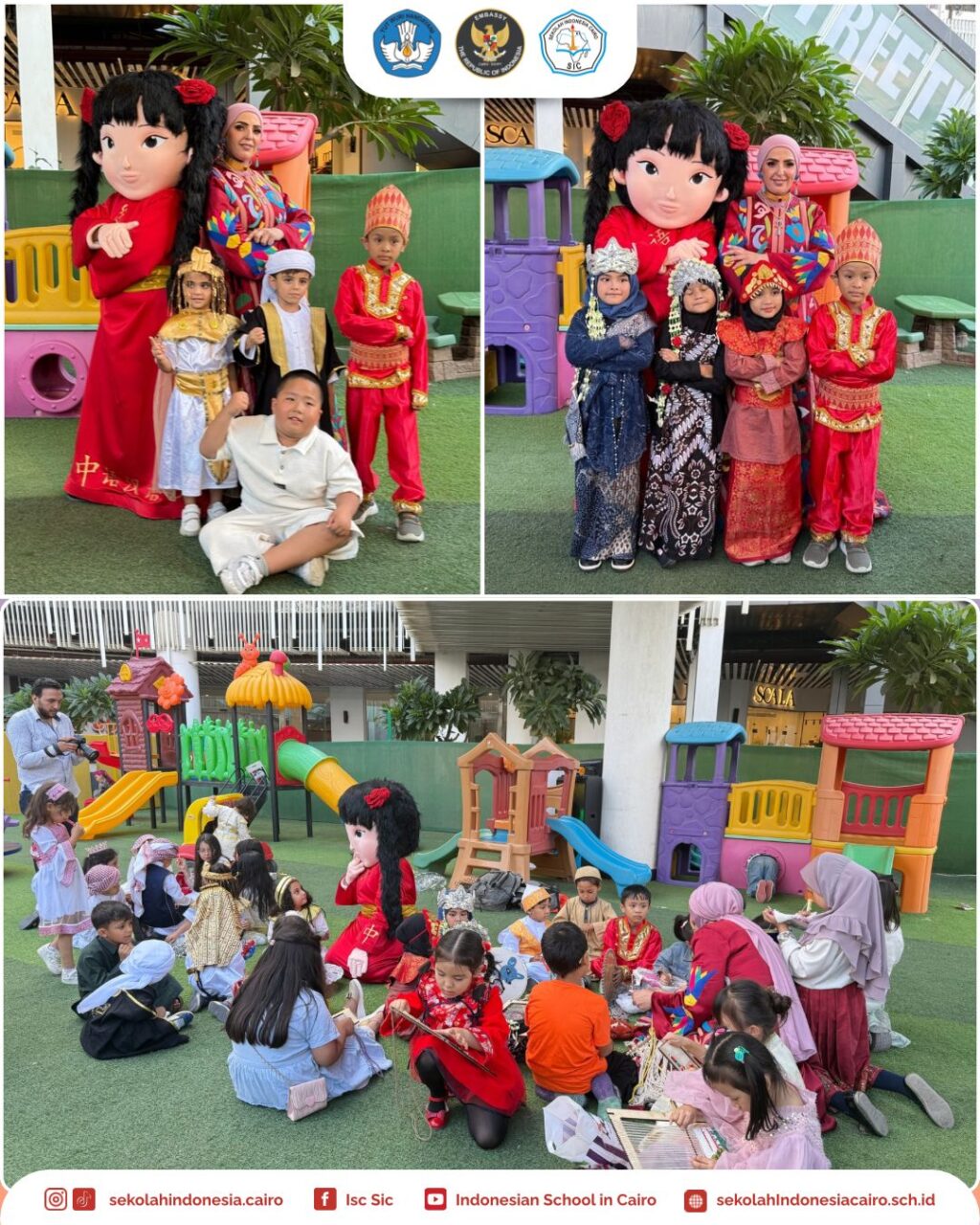 Budaya Indonesia hadir dengan segala keindahan dan pesonanya, menampilkan kekayaan seni tradisional yang memukau. Para siswa Sekolah Indonesia Cairo dengan lincah mengikuti acara dari awal hingga akhir dengan berbusana daerah komplit dengan aksesorisnya.
