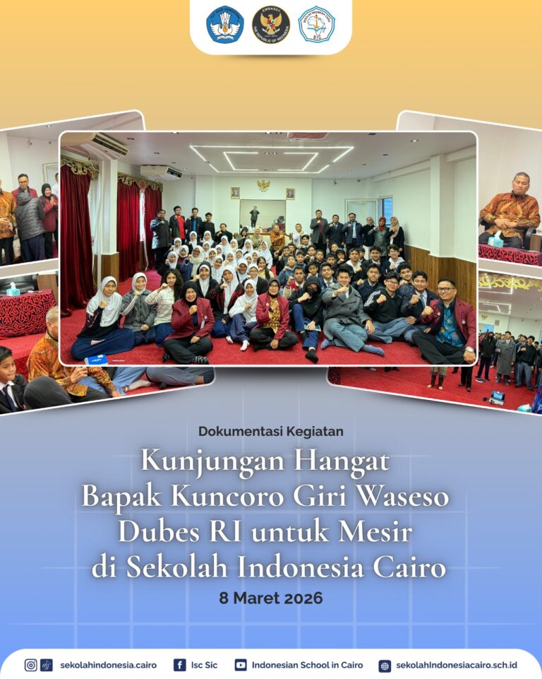 Keluarga besar Sekolah Indonesia Cairo mengucapkan selamat merayakan hari Raya Idul Fitri 1447 H. Semoga kebahagiaan, kedamaian, dan keberkahan senantiasa...